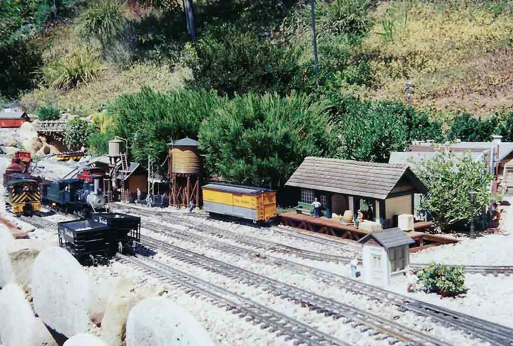 Steve joined in 1987, and has been involved in many layouts. This one was in Ventura, he was involved in the County Fair layouts in the early 1990's, he built another layout after he moved to Phoenix, and he capped it all off by building, or rebuilding, the 1:1 scale Hawaiian Ry. Last I heard, he was still managing it. All these pictures were taken by Bill Fincher. Thanks, Bill.