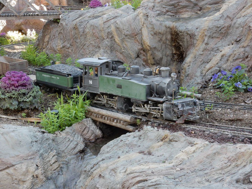 Many of our members have backyard layouts (indoor layouts are not impossible, but are rare around here) in a variety of scales all on 45 mm track. The majority of our members live between Thousand Oaks and Goleta, California, but we have active members as far away as Santa Maria, Bakersfield, Burbank, and Hollywood.