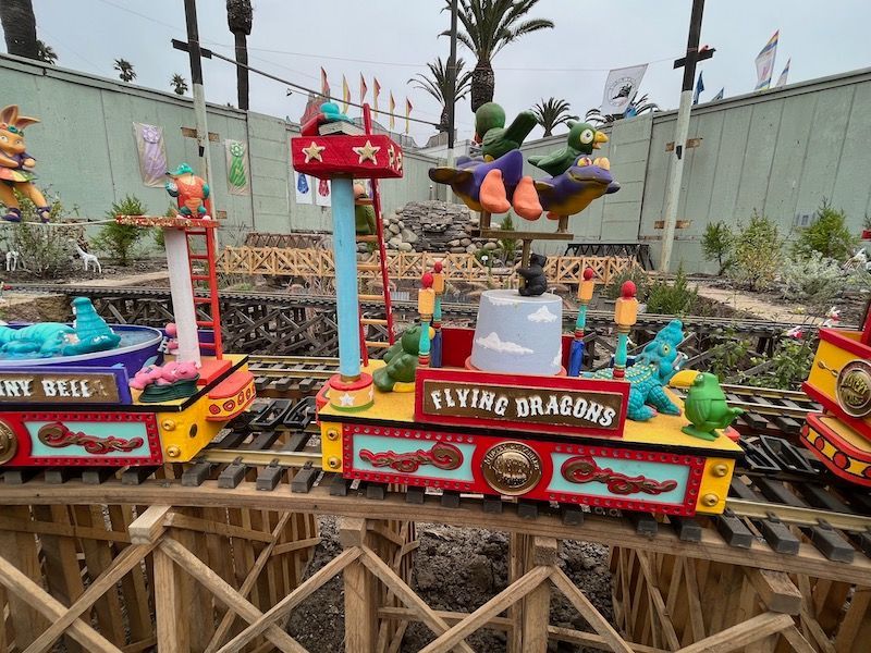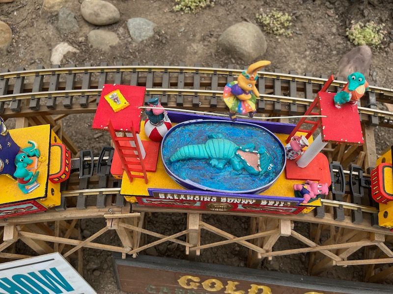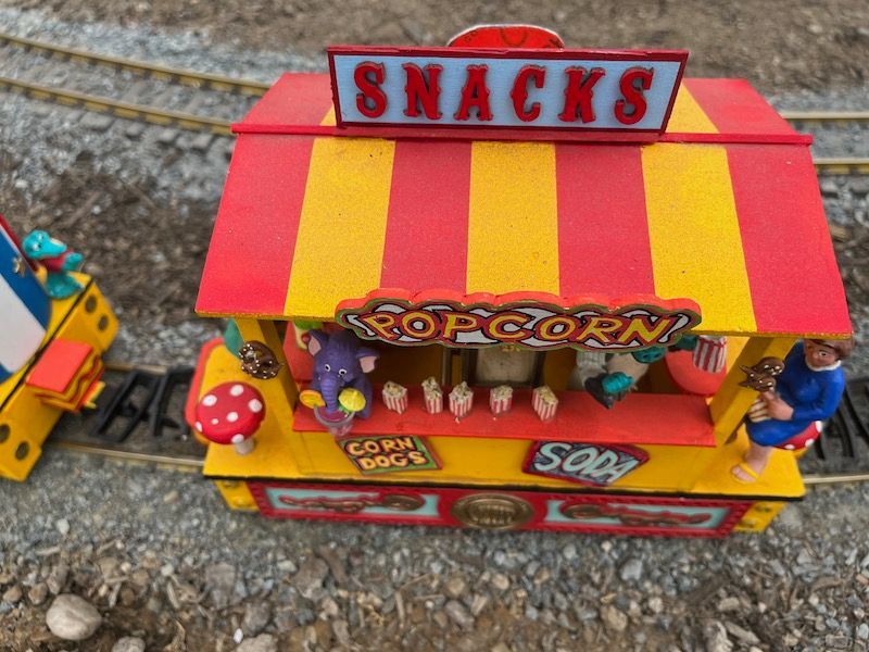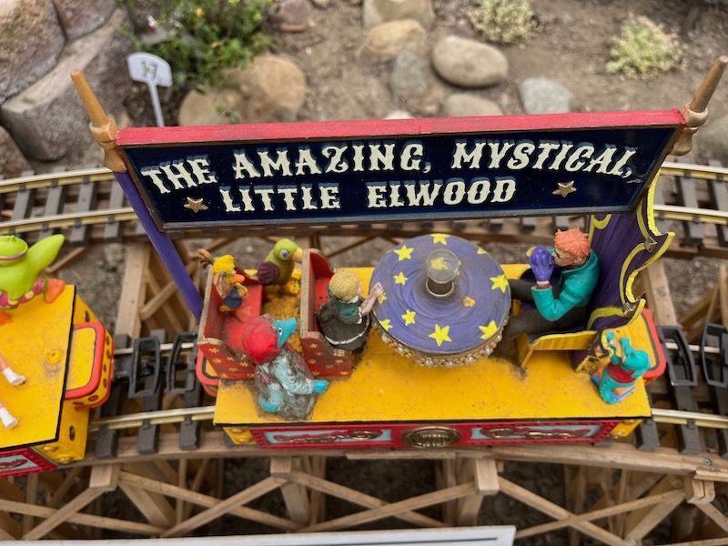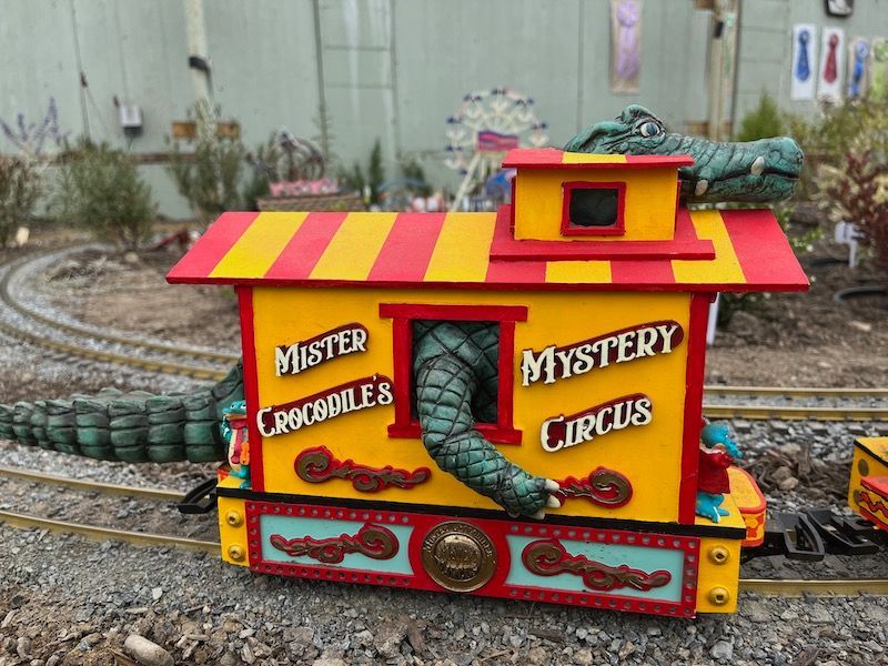 We added the most amazing circus train in 2023. Unlike every other circus train, Mr. Crocodile's Mystery Circus train IS the circus. On some cars, the animals are making the people do tricks! The Crocoband car plays circus "screamers" like "Barnum and Bailey's Favorite", "Thunder and Blazes", and "The Melody Shop". Screamers are songs set to a march tempo, but played up to twice as fast as normal marches.