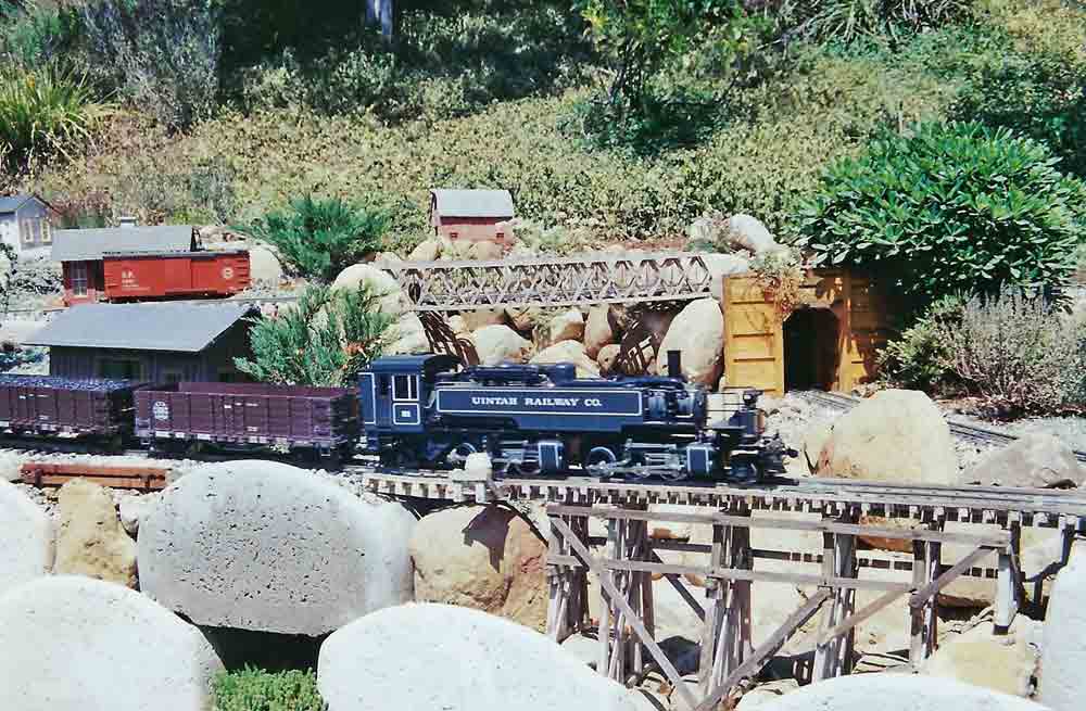 Steve joined in 1987, and has been involved in many layouts. This one was in Ventura, he was involved in the County Fair layouts in the early 1990's, he built another layout after he moved to Phoenix, and he capped it all off by building, or rebuilding, the 1:1 scale Hawaiian Ry. Last I heard, he was still managing it. All these pictures were taken by Bill Fincher. Thanks, Bill.
