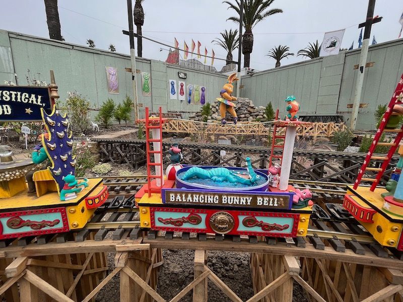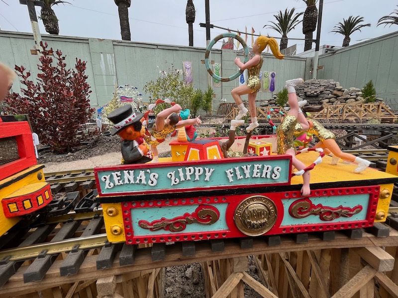 We added the most amazing circus train in 2023. Unlike every other circus train, Mr. Crocodile's Mystery Circus train IS the circus. On some cars, the animals are making the people do tricks! The Crocoband car plays circus "screamers" like "Barnum and Bailey's Favorite", "Thunder and Blazes", and "The Melody Shop". Screamers are songs set to a march tempo, but played up to twice as fast as normal marches.